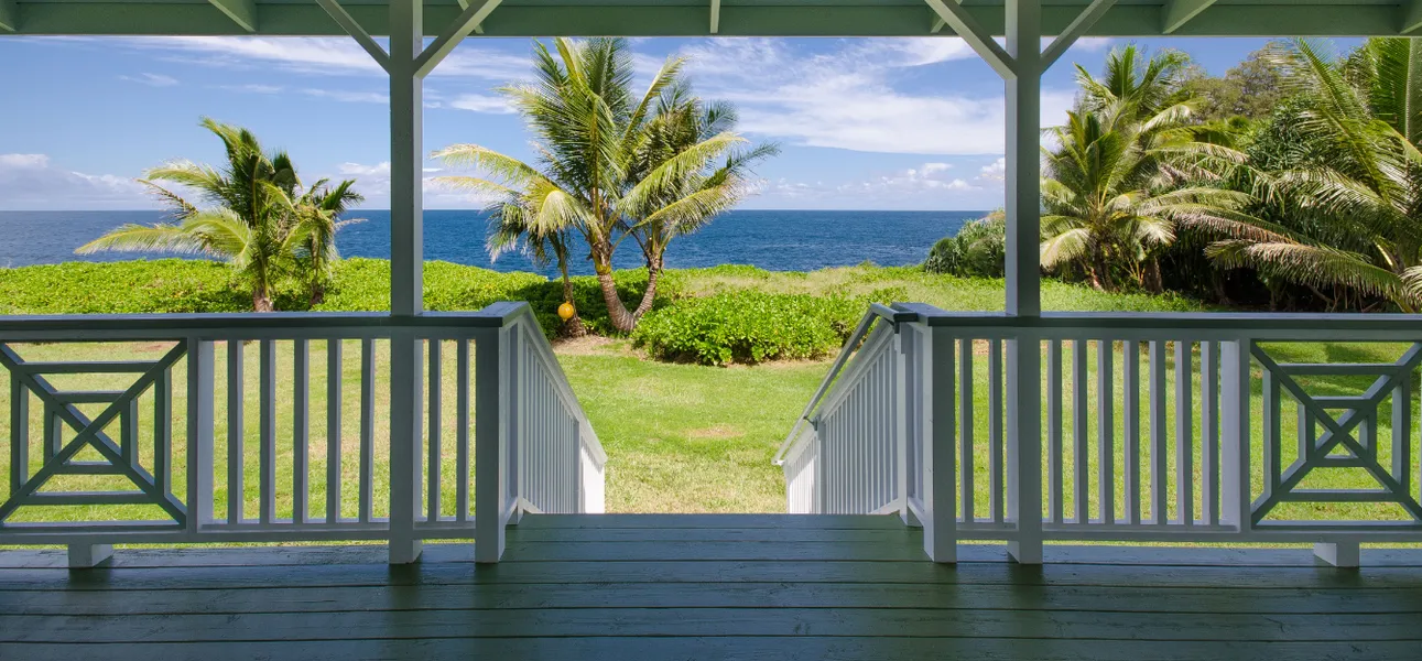 1-5-10-38 / 601515 ~ Three years were spent in the planning and completion of this newly built OCEANFRONT 4-bdrms., 3 baths home plus a two-car enclosed garage. One of the bdrms and baths has a separate entrance, suitable to accommodate guests or caretaker. Approximately 232 ft. of true shoreline are included within the 3.5 acres of land. Whales, dolphins and sea turtles appear just off shore. The views from the spacious lanai are truly spectacular. Sounds of the surf crashing against the black lava rock walled bluff coupled with constant fresh, warm air flowing in from the trades make this a true Paradise setting. Mature coconut palms and rich soil are an added bonus.