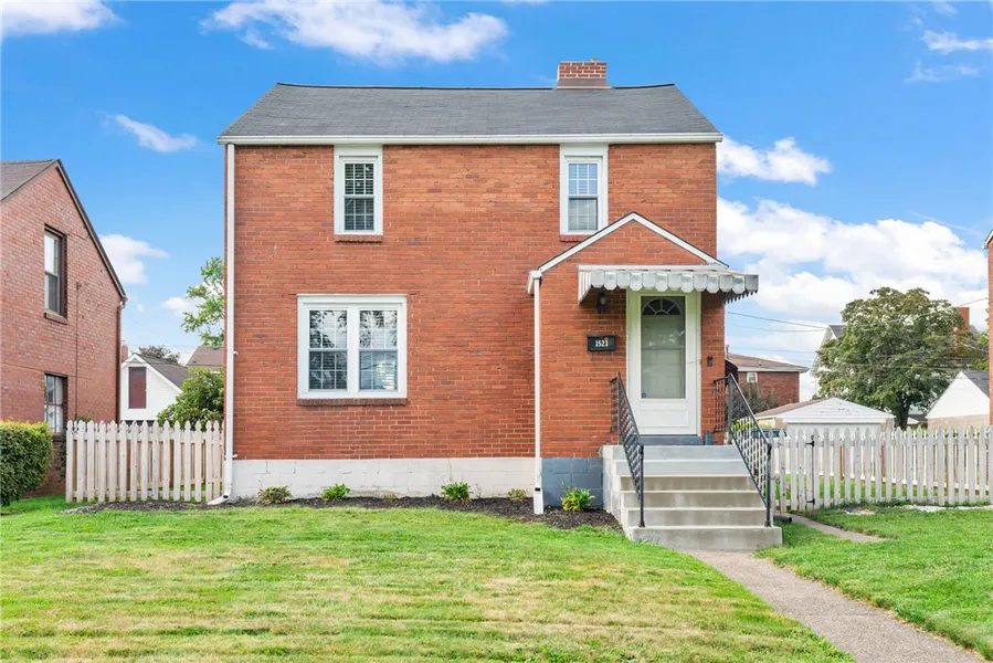 Fantastic all brick home with an exceptional location! Move right in to this beautifully updated home. You enter into a warm, inviting and spacious living room with lots of natural light that flows seamlessly to the dining room and kitchen. The dining room is spacious and provides easy access to the deck through brand new french doors! The kitchen is open to the dining room and allows for uncomplicated entertaining. The kitchen is well appointed for the chefs out there with lovely cabinetry, a gorgeous backsplash and adequate space for more than one chef. Upstairs you will find a large primary suite with an exposed brick accent in that is also in the hallway. The upstairs is rounded out with a guest bedroom and full bath. The basement is an ideal storage and laundry space. Recent improvements include new french doors to access the deck. The fully fenced back yard provides a safe play/entertaining space with a firepit and storage shed.