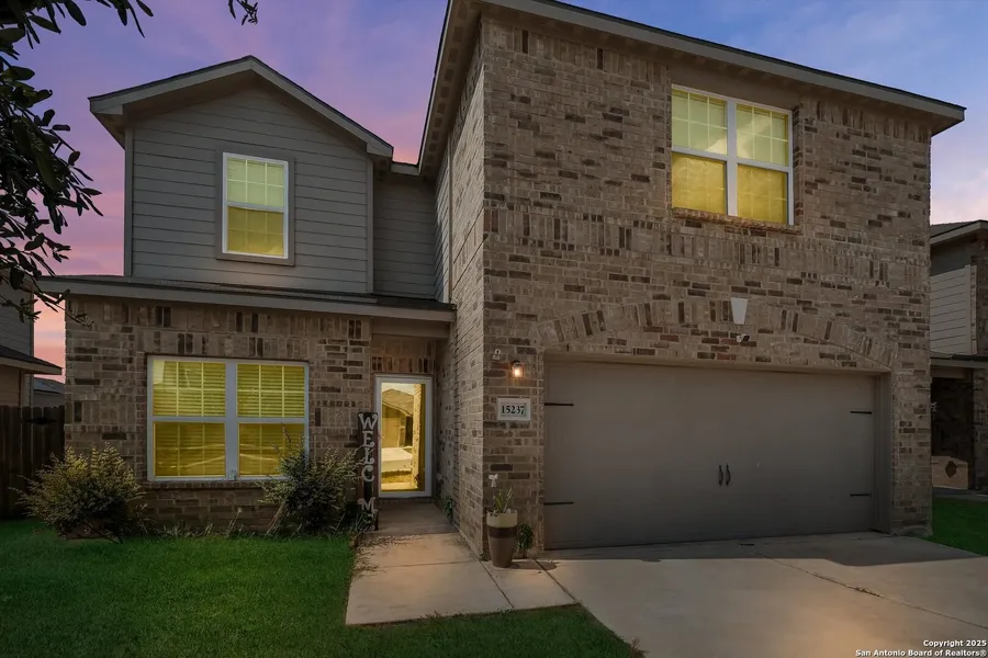 This charming two-story brick home offers the perfect blend of comfort, space, and functionality for today's lifestyle. With 4 bedrooms, 2.5 bathrooms, and a generous open layout, this home is ready to meet the needs of any family. Interior Features: Bright and spacious living room with wood-look flooring and plenty of natural light. Open-concept kitchen featuring granite countertops, dark cabinetry, black appliances, and ample storage-perfect for both cooking and entertaining. Downstairs primary suite with large windows overlooking the backyard, walk-in closet, and a private ensuite bath complete with dual sinks, soaking tub, and separate shower. Upstairs includes a spacious game room/flex area plus secondary bedrooms with generous closet space. Exterior & Backyard: Covered patio that opens to a large, fully fenced backyard. Enjoy summer days in your above-ground pool! Storage shed included for added convenience. Location: Located in a friendly neighborhood with quick access to Loop 1604, IH-35, Lackland AFB, and downtown San Antonio, this home offers both convenience and community.