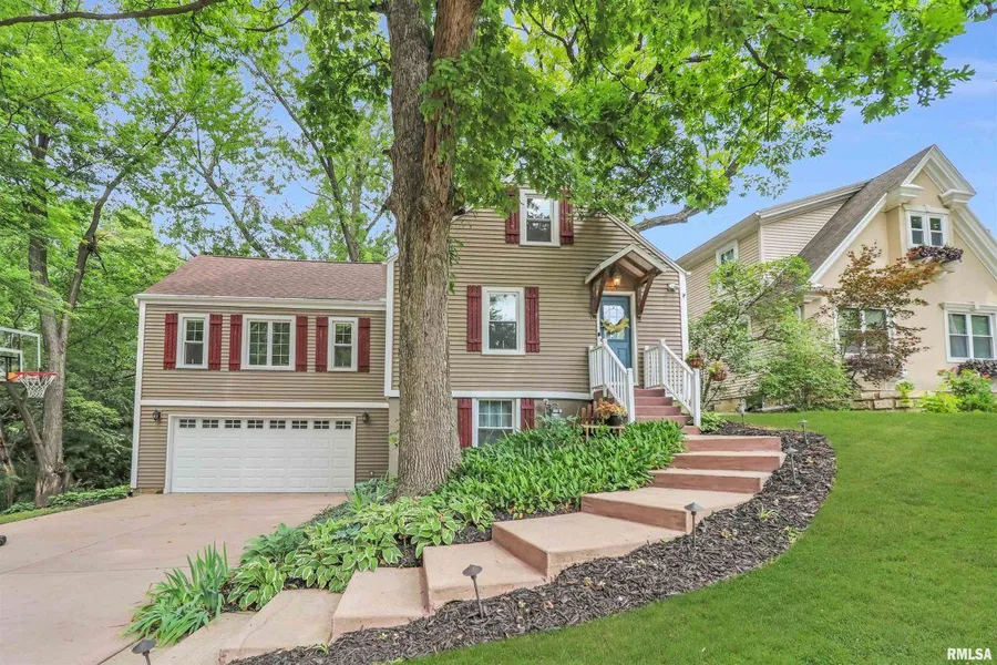 RARE FIND in prime location just steps to Grandview Drive and popular Peoria Heights shopping & dining! Welcomed with a spacious updated kitchen complete w/ LV plank wood flooring, GE stainless steel appliances, granite countertops, glass subway tile backsplash, butcher block top buffet, dining area & breakfast bar! Authentic barn wood sliding doors lead to the incredible family room featuring soaring vaulted ceilings, gas fireplace, wall of windows & sliders to the composite deck, more authentic barn wood sliding doors w/ wet bar just off the room! Main floor bedroom/office. The upper level primary suite has a private remodeled bath w/ shower & walk-in closet. The finished lower level has a large laundry/mud room off the 2 car garage, 3rd bedroom & additional full bath. Private setting surrounded by mature trees. Updates include: roof, hvac, water heater, flooring & interior paint. Don't wait to call this one home!