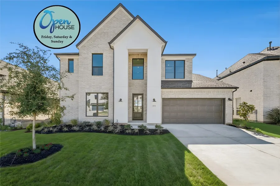 Westin Homes NEW Construction (The Wilson - A) in highly sought after Wolf Ranch. 3 CAR GARAGE. Gorgeous 2-Story Rotunda Entry with Wrought Iron Circular Staircase. Gourmet Open Island Kitchen with Quartz Countertops, 42" Tall Kitchen Cabinets with Uppers & Built-In Stainless Steel Appliances. Family Room with High Ceilings & Wall of Windows. Large Covered Patio. Private Primary Suite Down with Luxurious Bath Featuring Double Vanity Sinks with Quartz Countertops, Large Walk-in Shower & Free-Standing Tub. Guest Suite with Private Bath on First Floor. Study with Double Doors. Upstairs features Media Room, Game Room & 2 Beds / 1 Full Baths. Mud Room. Smart Home Package. Tray Ceilings, Architectural Details and more!