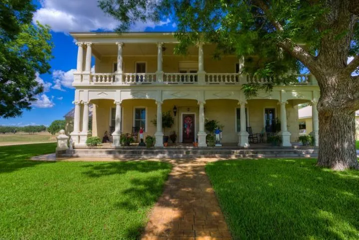 IMPROVEMENTS: The ranch flows around a classic compound centered by a 130 year old, approx. 3,200 SF plantation-style home built from stone quarried on the ranch. This finely-restored beauty exudes strength and class, and consists of 4BR, 3BA, with handsome porches and patios all around, with exquisite, landscaped grounds as a backdrop. The setting is relaxed and country club-like, with large pecan bottoms, impressive whitetail deer and manicured fields visible in the distance.