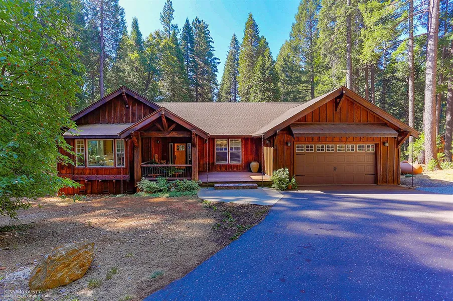 Fabulous Country Contemporary home with unique touches of mountain design and architecture, nestled on a beautiful level 2 acre parcel. Grand great room with open beam and vaulted ceilings, sky lights and lots of windows to invite lots of natural light! Slate fireplace, plant shelves above wood clad windows and beautifully appointment wood and slate floor accents! Awesome kitchen with high end stainless appliances with wood slab and granite counters & hickory cabinets. Master suite and guest bedrooms on main floor, plus second living area and den on lower level with concrete floors and independent gas stove. Covered front porch, and lovely back deck overlooking the manicured, natural landscaping. Room for RV and boats, large greenhouse and minutes to Scotts Flat Lake and historic Nevada City. This home is elegant in a country manner and offers gracious mountain living!