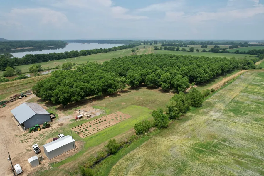 This is a pristine, irrigated pecan farm and operation that is coming into its prime. Situated in the Arkansas River Valley, it consists of 154 acres m/l, a shop and an office. This farm is as close to turn-key as possible with most of the equipment needed to run the farm available for purchase too. This property is located in Conway County just outside of Morrilton by the Arkansas River with good I-40 and county road access. The trees are set up to be watered individually in sections via electric wells. The shop is large enough to hold all the equipment needed to service and maintain the farm. The office is a good, secure building that’s heated and cooled. Additional acreage, structure and equipment can be purchased. Age Structure & Layout -1351 of the trees are 27 years old. -603 trees are in the 4-10 year old range with some of those producing. -Every 6th row is a pollinator. -The farm sees two hay cutting a year that provide about 400 bales on the first cut and 300 on the second cut. A third cut is normally a mow to get things clean and ready for harvest. The Tree Varieties include: Oconee Pawnee Caddo Choctaw Kanza Nocono