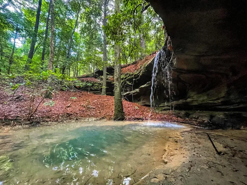 The outstanding views and wildlife on this tract make it perfect for someone that is interested in hunting, hiking, or just being in nature. It is easily accessible by paved county road frontage with city water and electricity available, and it is only 5 miles away from amenities in Haleyville. There is a trail system that provides access for hunting and to all of the improvements on the property, including a small pond that could be easily expanded to create a private fishing lake. There are already two food plots, the largest being a quarter acre. They could be easily expanded and there is room to add more. This area of Alabama is known for its deer hunting due to re-stocking of northern deer in the early 1900s. The result is excellent hunting and a relatively early rut. Along with deer, we also found where turkeys have been scratching for acorns under the mature oaks in the northern end of the property. This part of the property features Tanyard Creek, which winds from west to east through the property. Here you will find why Winston County is considered an undiscovered gem. Streams flow between the ridges and create 2 separate waterfalls after a steady rain. Underneath the waterfalls are rock formations that create cave-like overhangs where the temperature drops dramatically during the summer and provides a place to cool off. Massive rock walls along the creek provide absolutely outstanding views that must be seen to appreciate. Walk along this creek and you will feel like you are in the Bankhead National Forest, which is only a few miles away from this property. Building a remote cabin back here would be any outdoor enthusiast's dream! On the north side of the creek is 25 acres of mature hardwoods which provide hard mast for wildlife in the fall, and the ridges are covered in deer sign. The views, water features, wildlife, and improvements make this tract truly unique. There is additional acreage available directly across the road. Please contact Spenser Bradley or Jake Pinholster if you are interested, we would be happy to take you on a private tour to show you all that it has to offer!