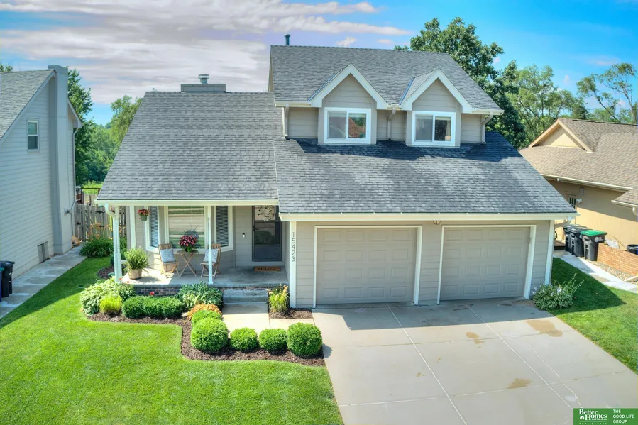 Beautifully updated 2-Story in Millard School District! Stunning home filled with charm, warmth, and updates throughout. The inviting living room features soaring ceilings, custom built-ins, and a striking double-sided fireplace that flows seamlessly into the updated kitchen. The kitchen boasts quartz counters, a large island, tile backsplash, LVP flooring, and a cozy fireplace perfect for entertaining or everyday living. Enjoy an open floor plan that connects to a spacious family room with picturesque views of the walking trail leading to Lake Zorinsky! Enjoy the large deck and soak in the serene surroundings. The primary suite offers a renovated bath with double sinks and a beautifully tiled shower. Two additional bedrooms and a full bath complete the second floor. The finished basement provides even more living space with a large rec room, 4th bedroom, and a ¾ bath. Just blocks from the water park and steps to trails and Lake Zorinsky. This is the one you've been waiting for! AMA