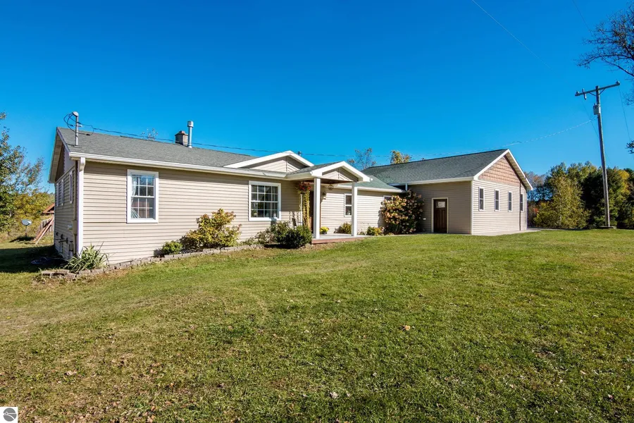 Welcome to your dream family home nestled in a tranquil country setting. This beautiful property features 3 bedrooms and 2 baths making it perfect for families or those who love to entertain. The large living room, has a stunning fireplace and cathedral ceilings. The patio doors lead you to a wrap-around deck that provides breathtaking views of the surrounding landscape. The updated kitchen has elegant hickory cabinets, high resolution laminate counter tops, and a large pantry. The bar eating area adds a casual touch. The combined kitchen and dining room has its own fireplace and quality hickory wood floors enhancing the warmth and charm of this home. The basement has many possibilities, featuring ample space for an extra family room or an additional bedroom area complete with walk-in closets and a full bath. The classic red barn is 64 x 36 providing great storage and cover for the horses/livestock. There is a garden shed, storage shed, and hoop greenhouse. Hunters this property provides deer, turkey, geese for all your hunting seasons. Don't miss the opportunity to make the beautiful home your own!
