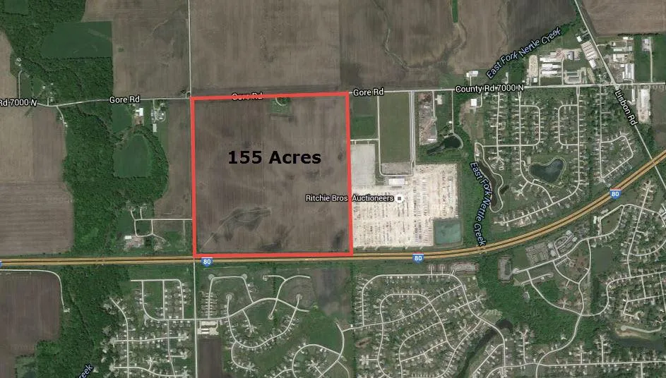 155 acres with excellent frontage along I-80 in Morris, IL. 26,000 vehicles pass by this site everyday. Easy access to Rt. 47 and I-80, near shopping and the Richie Brothers Auction facility. Great property to buy and hold for long-term appreciation or develop now. Utilities available to the site from the city of Morris. Strong demographics for industrial developments in this area. Route 47 is being widened to four lanes for easier north-south traffic movement. Very good farmland with a PI of 128.