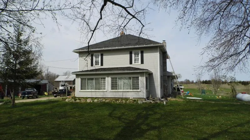 155 rolling acres stretching for a mile, two road frontages. Approximately 80 acres tillable, could convert more if you wanted. Four bedroom farm home and buildings on south end of parcel. Pasture land up by barns, woods, spruce trees, pond in the middle and hayfield and more tillable at north end. Plenty of deer and turkeys wandering the property for the hunter. Great place to get into farming, add to your existing acreage, or turn into a hunters get away. Property is comprised of two parcels. 2012 crop rights reserved. Seller willing to look at possible splits. Possible L/C 50% down, third party approval