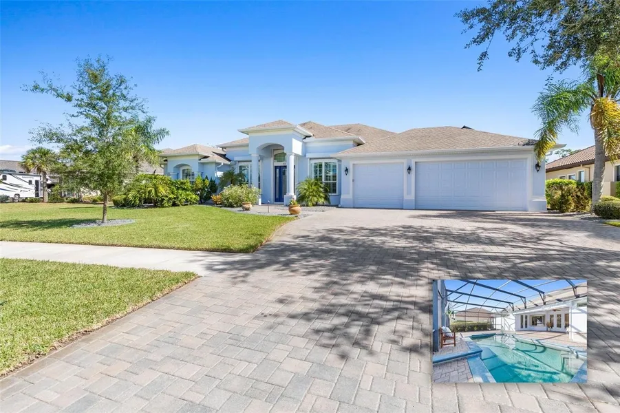 This home is designed with great attention paid to every detail concerning beauty & functionality. Featuring automatic & manual hurricane shutters as well as a full house, automatic switch on generator you’ll have peace of mind in any storm. The 3 car garage also features “magic stairs” which are stairs & a railing that come down from the fully floored attic at the push of a button. The solar hot water heater with electric backup & solar attic fan help reduce energy costs while a water softener ensures clean and pure water throughout the home.