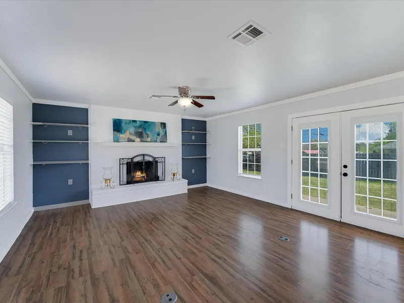 Welcome to 155 Travis Ln, a charming home that combines updated interiors with access to all the perks of lake living! Step inside to find a bright, open living area with wood-look flooring, a cozy brick fireplace, and French doors that bring in natural light and open to the spacious backyard. The kitchen offers a large center island with butcher block top, modern lighting, ample cabinet storage, and an easy flow into the dining and living spaces - perfect for entertaining. With multiple flex rooms, this home provides versatile options for a home office, game room, or guest space. The bedrooms are generously sized, and the updated bathrooms feature stylish touches like shiplap accents and modern fixtures. Outside, the large fenced yard and storage shed is ideal for pets, play, or gatherings - with plenty of space to relax or garden. Living here means more than just enjoying your home - you'll also have access to a community park, covered picnic areas, playground, golf course, and boat ramp, making every day feel like a getaway. Whether you're spending time on the water, playing a round of golf, or simply enjoying the peaceful Hill Country views, this property offers a lifestyle you'll love!