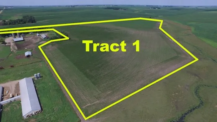 General Description of Tract 1: According to a recent survey, this tract contains 46.62 gross acres. According to a survey, this tract contains 46.46 acres tillable. Prior to survey FSA showed 46.12. This is an inside tract of farmland which is nearly 100% tillable. The predominant soil types include: 410B-Moody, 411B, 411C2-Egan, 910B-Trent and 733-Calco. This farm has an average CSR1 of 60.7 and a CSR2 of 69.5. This farm appears well managed and in a good state of productivity. This farm is enrolled in the ARC County Program and has a corn and soybean base combined with adjoining farm with a PLC yield on corn of 157 bu and a PLC yield on soybeans of 48 bu. The topography of this farm is gently rolling. It is rare to find a parcel with nearly 100% tillable acres. This farm is classified as non hel. This farm has some drainage tile installed in the NW corner. Make Plans today to purchase this quality inside tract today!! NOTE: If the buyer of the acreage site does not purchase Parcel I which is .25 of an acre, (pasture alleyway) then this parcel will be included with this tillable farmland at the same price per acre. Buyer of Tract 1 will be required to install a field driveway at buyers expense for access.
