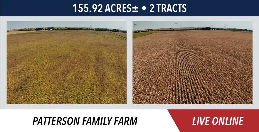 The Patterson Family Farm will be sold on a price per acre basis, based on taxable advertised acres. Both tracts will be offered through the marketing method of Buyers Choice, whereas the high bidder can elect either or both tracts for their high bid. If the high bidder does not elect both tracts, then the remaining tract will then be sold. The tracts will NOT be offered in their entirety at the conclusion of the auction.