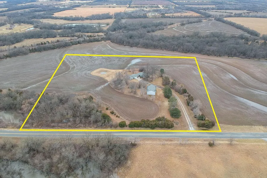 NO MINIMUM, NO RESERVE!!! 2 bedroom, 3 bathroom ranch home on 10 +/- acres in the Rose Hill School District! This Ray Warren built home sits off E. 79th Street featuring masonry stone, an attached two car garage with a spacious paved driveway for additional parking, and a covered entry. Per the seller the roof was replaced in 2011. You can enjoy the views of the land on the backyard deck overlooking the property. Next to the home is a storage building, perfect for storing yard equipment. As you turn onto the property you will notice the impressive 48 x 32 garage/shop with an overhead door, a man door and windows. There is a lagoon, propane tank and an irrigation well east of the home.