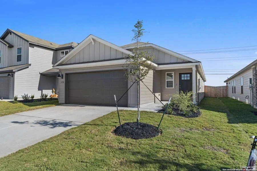 The one-story Beeville plan greets you with a front porch entry and foyer space, leading into the spacious island kitchen and cafe. Enjoy game nights in the connected gathering room, or extend your entertainment outside with the optional covered patio. The adjacent owner's suite offers a tranquil retreat, and two additional bedrooms provide plenty of space for guests.