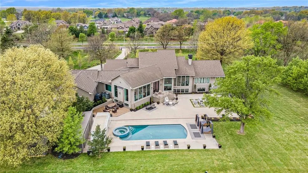 This beautiful property can be an entertainer's dream, a family's private sanctuary or a property to bring your horses to. Exquisite remodel from top to bottom in 2017 including all new plumbing and electrical! Resort styleliving at its finest with this OUTSTANDING 9 bed/9 bath private estate that includes 3.89 tree lined acres, a saltwaterpool with telescopic enclosure, tennis court, outdoor kitchen, firepits, and mother in law's quarters! Breathtaking entryway includes stunning viewsthroughout the open first floor with an abundance of natural light and 19 foot ceilings. Seller's remodeled home with theintention of staying forever...... no detail was left untouched. Exquisite yet functional, quality design throughout withcraftsmanship that includes new electrical and plumbing of the entire home. Mainfloor includes 2 bedrooms and 2laundrys, 2 large dining areas and sitting areas with beautiful full views of the back acreage, office space, and a kitchenthat is the perfect centerpiece with elegant finishes, wolf appliances, oversized island and a ton of storage. All closetsand pantry throughout the home have generous and well organized space. Mother's in law's suite (full kitchen), caneasily be converted back into garage space to include 7 spaces, or stay a separate and private space for guests, or afamily member who needs extra support. Lower walkout level includes 3 bedrooms, workout space, living area and fullkitchen...... perfect recreational space. Upper level includes two bedrooms and large sitting/study/office area. Thisexquisite estate is one of a kind and located in the coveted and #1 school district, Blue Valley!