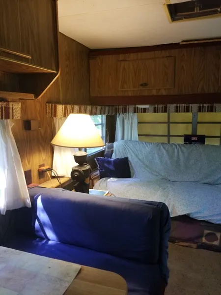 welcome to your home away from home! This cute shed with covered porch is your perfect little get away. The property also has 1983 camper with permit and electric that also stays with purchase of this 14.95 Acres propane two other sheds and water storage tanks and septic. Everything stays from tv to furniture. the only thing they are taking is personal property.