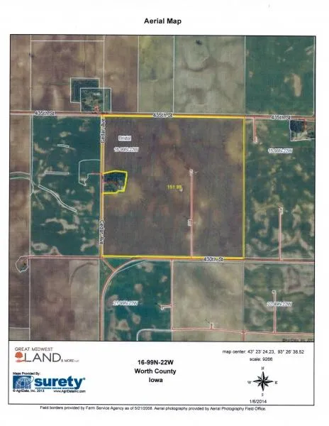 156 acres m/l - Approximately 148.8 tillable acres with a CSR of 65.6. Annual wind income of $9,000.00. Approximately 46,600 feet of tile installed in 2013.