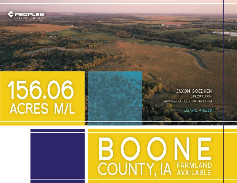 Peoples Company is pleased to offer high-quality tillable acres and timber. The property is in Section 30 of Cass Township on paved County Highway E 62 located north of Woodward, Iowa. The property consists of 156.06 total acres with approximately 103.90 FSA tillable acres carrying a CSR2 of 81.2, well above the county average. Primary soil types on the tillable acres include Nicollet loam, Clarion loam, Webster clay loam, and Zenor sandy loam. In 2017, the farm was patterned tiled with over 55,000 feet of tile installed. The remaining acres consist of high-quality hardwood timber providing prime recreational opportunities. The farm lease is terminated and will be open for the 2022 growing season.
