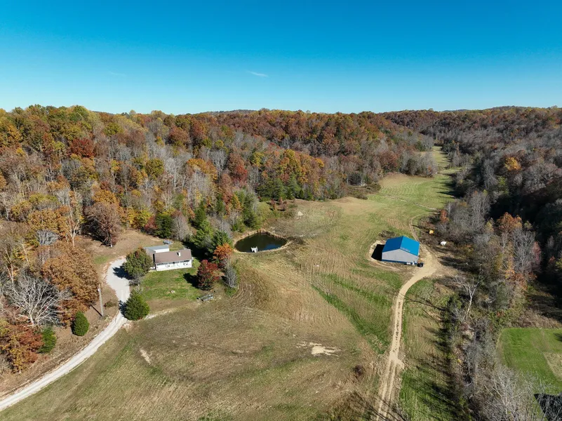 156.68+/- FARM FOR SALE WITH HOUSE, BUILDING, OFF-GRID CABIN. Come check out this exceptional farm that offers true country living. The main residence includes approximately 1,909+/- sq/ft of living space with 3 bedrooms and 2 bathrooms. The interior features a spacious kitchen, a cozy primary bedroom, and a large living area, complemented by a covered front porch and a sizable back deck for outdoor enjoyment. The home includes a full unfinished basement, providing additional space for storage or future customization. A one-car attached garage adds everyday convenience. In addition to the main home, the property includes a 60x80 building. This structure is fully solar powered and provides ample storage or workspace. Positioned at the rear of the property is an off-grid cabin with its own solar power system and a private water well, offering additional lodging or a remote retreat. The property includes several ponds, including one located behind the home with its own dock, as well as a creek that runs through much of the acreage. The land is divided between open fields and wooded areas, enhancing both scenery and land use potential. Recognized as a strong hunting location, the property shows significant wildlife activity, and is in a well known big buck area. The farm is tucked away in a secluded setting with expansive views, and presents investment opportunities for agriculture, recreation, or residential use. It combines natural beauty with functional land features, designed for both personal use and long-term potential. Please note, the building/tiny home behind the main house isn't included in the sale but may be available for purchase separately. Call or text for more details or to set up a showing.