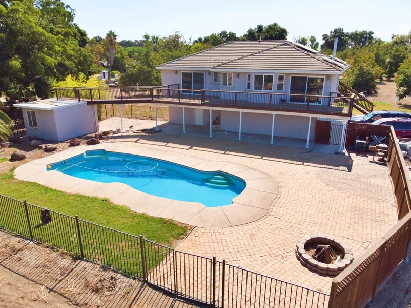 Peaceful and secluded home right off the Sacramento River. The property includes just over eight acres and overlooks a lush orchard of Chandler Walnuts, amazing sunset views from its backyard patio, and a sparkling swimming pool. The large outdoor patio can entertain many while one may choose to sit fireside and enjoy solitude instead. Built in 2000, this home is equipped with modern elements like solar panels, custom built cherry cabinetry, bamboo floors, granite counters, fresh interior paint, newer stucco and an AG well. The five-car garage and shop offers plenty of storage, is fully finished, and has a bonus room that can be used for many purposed i.e. an office, den, workroom or possible guest quarters. The tranquility of this country estate is only minutes from activities such as boating, golf, nearby freeways, SMF airport, shopping, Woodland School District and Downtown Sacramento. Make it yours today!