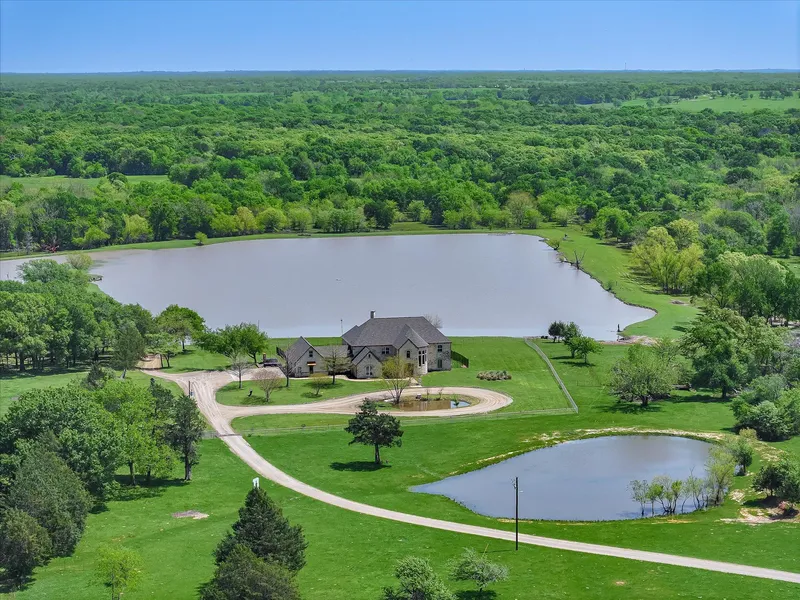 Welcome to a truly magnificent East Texas ranch offering a rare combination of luxury living, premier recreational opportunities, and productive land. Spanning approximately 493 picturesque acres, this exceptional property is anchored by a stunning 4,539 SF custom home perched above a serene 13-acre private fishing lake. Crafted with impeccable quality and attention to detail, the residence showcases marble flooring, granite countertops, and stainless steel appliances, all seamlessly integrated into an open-concept living area designed for both comfort and entertaining. Expansive rooms throughout the home offer natural light and unobstructed views of the ranch. The upstairs office provides a quiet retreat with panoramic views overlooking the lake and rolling pastures beyond. This ranch is ideally suited for both agricultural and recreational pursuits. Approximately 300 acres are devoted to improved pastures for grazing, while 193 acres of mature hardwood timber provide a haven for deer, hogs, and other native wildlifeperfect for hunting or nature exploration. Infrastructure on the property includes multiple barns for equipment and hay storage, workshops, and a remarkable 7,000+ SF metal building complete with a caretakers apartment. A network of well-maintained trails winds throughout the property, making it easily navigable by ATV or horseback. Numerous ponds are scattered across the land, supporting both livestock and wildlife. With over 9,000 feet of frontage on a State Highway, the ranch is easily accessible and offers significant long-term value. Whether you're looking for a private luxury retreat, a working cattle operation, or a hunting and recreational paradise, this East Texas gem offers it all in one extraordinary package.
