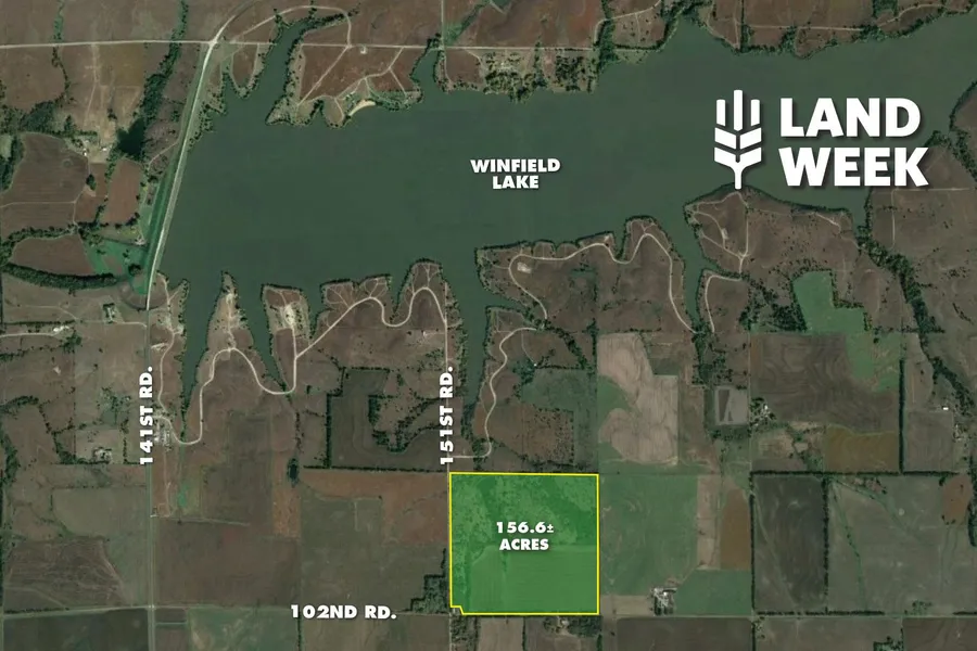 Selling by the acre! Great opportunity to purchase 156.6 +/- acres of land in Cowley County! This land is roughly 200 feet from Winfield Lake. Approximately 87 acres of the land is recreational with the remaining 70 acres tillable. The northern parcel of land provides recreational opportunities such as hunting, camping and fishing in the 5 +/- acre pond with 5 springs. Lots of wildlife! The property also features a metal 30 x 40 shop that sellers intended to finish into a hunting lodge. The shop has insulation and plumbing was built approximately three years ago. The southern parcel of land has been previously used for planting corn but is currently not being farmed. All mineral and water rights will transfer to the buyer.