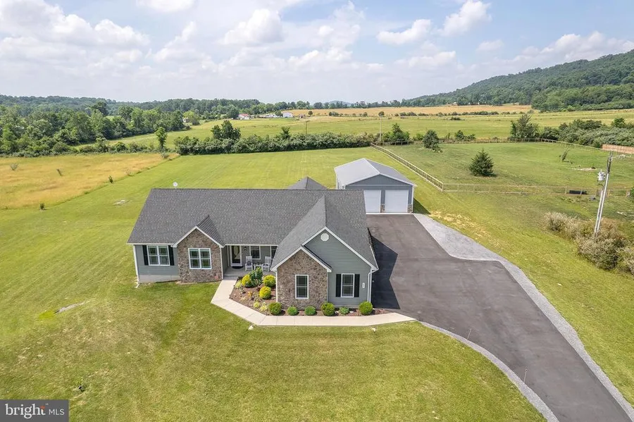 Cherished Country Home on 2.40 acres! Almost heaven, Winchester VA, country roads take you home! 157 Marions Dr., is a slice of heaven. . Cherished Ranch style home only 5 years young & better than new lifestyle for living with an open floor plan. 3-4 bedrooms, to include a gracious primary suite & bath, laundry room nearby. Split floor plan for privacy with a central living room-kitchen-dining areas with options for entertaining. Solid hardwood floors gleam in the sunlight, airy 9 ft ceilings, .Front and rear porches,overlook an open 2.4 acre lawn with room for outdoor fun, garden or pool. Your vehicles deserve a cozy home too with an attached 3 bay garage(heated/cooled) and a floored attic storage area, 4 ft conditioned crawl space. Oh, but wait, there is a 30x50 (1500 sq ft)detached pole barn 3 bay garage/workshop/pole barn that stands proud that is cooled/heated as well and there is is more than just parking, even a ladies she shed or office inside the barn a sanctuary for creativity, reflection, or simply sipping tea.! Falling in love with this property is certain, ! There is room to live, work and play at 157 Marion Drive Winchester VA!