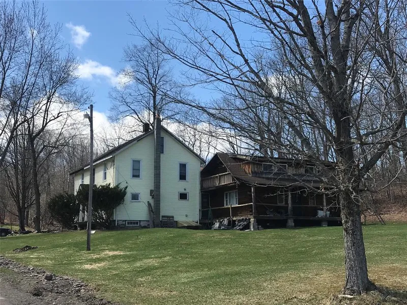 Large Home with additional home built on. Unique opportunity and potential awaits you with two homes, over 19 acres, 2 car garage, 2 silos, barn, beautiful pond and views. Structures are being sold as is. The homes are sharing well, septic and heat.