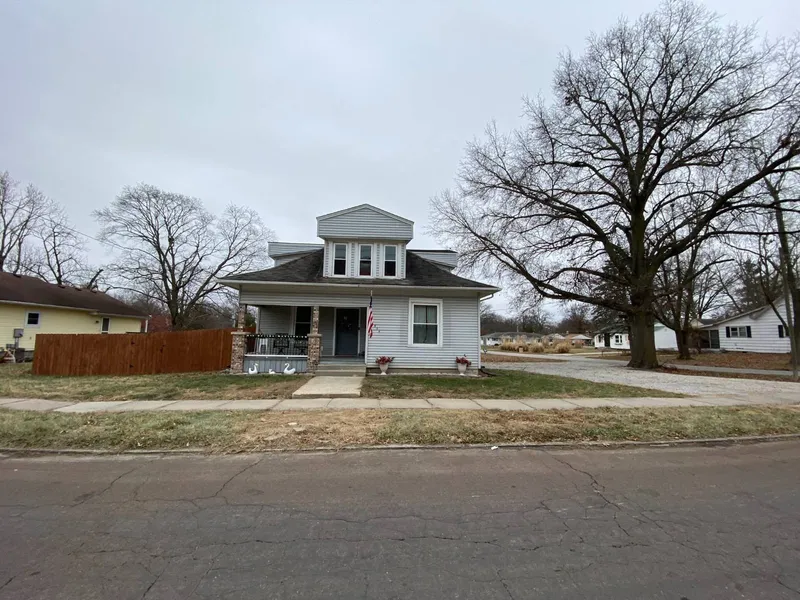 Welcome to this gorgeous home full of character and charm! The adorable front porch is perfect for enjoying your morning coffee! Step inside to find stunning original wood built-ins and brand-new flooring throughout. The main floor features a sizeable front room, formal dining room (or additional living room), eat in kitchen and a convenient main-floor laundry room. Just off the front room, you'll find the spacious primary bedroom with an en-suite bathroom and walk in closet. Entertain guests on the back patio overlooking the large fully fenced yard. A storage shed provides extra space for tools or outdoor equipment, while the generous driveway offers plenty of parking for multiple vehicles. Located just steps from the middle school, this home is perfect for anyone seeking both charm and updated comforts. The cellar provides additional storage space with room for deep freezers or hobby equipment. With an abundance of charm, modern updates, and inviting indoor and outdoor living areas, this home is ready to welcome its new homeowner!