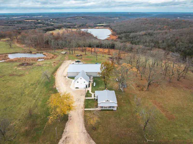 Prime 3-acre property with high visibility highway frontage featuring a versatile 6,000 sq ft warehouse. This well-insulated building is equipped with heating and air conditioning, and polished concrete floors. The warehouse includes a loft-style finished office with large windows that provide a view of the workspace, ideal for oversight of the operations. The first home is a charming carriage house with 2 bedrooms and 1 bath, an open floor plan with soaring cathedral ceilings, a large carport, expansive decks, and breathtaking views. The second is a fully remodeled modern farmhouse with 3 bedrooms, blending contemporary style with rustic charm. Each home is tastefully decorated and ready for guests, offering a unique blend of comfort and style in a serene setting. The location of these homes are in an ideal location just a little over 3 miles from the world famous Fugitive Beach Water Park, just outside of Rolla Missouri home of Missouri S and T, and just a short drive from Fort Leonard Wood Military Base.