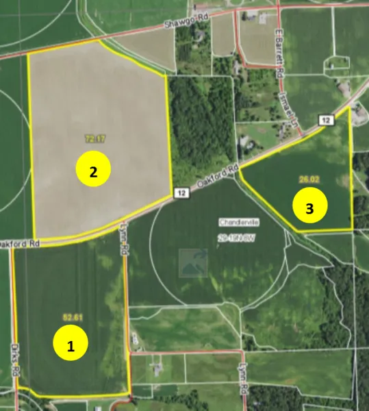 NO RESERVE! These are strong income-producing farmland tracts in Cass County, Illinois with little waste in the form of non-productive acres. Tract 1 is on a center pivot irrigation system. Easy access is available from all weather roads. Soils tests indicate high fertility.