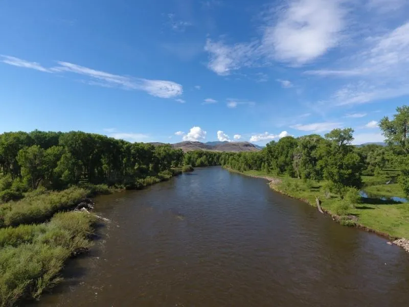 An abundance of trophy trout along with a multitude of wildlife species are found throughout the ranch. Mule deer and pronghorn antelope can often be found grazing or bedded on the ranch. Both bald eagles and golden eagles soar year-round on the ranch along with red-tailed hawks. Other raptors can be viewed seasonally. In the spring, after the snow and ice melt, waterfowl return to nest and hatch their young along the river, creek, slough, and pond waterways. The ranch experiences an annual return of the great blue heron to its rookery located on the lower ranch with over 50 returning blue herons nesting in the cottonwoods along the river. Ducks and geese return to the ranch in significant numbers along with a myriad of small bird species. Spring and fall migrations also provide for the occasional glimpse of both sandhill cranes and great white pelicans. Occasional moose, elk, mountain lion, bobcat, lynx and other species of both big and small game pass through the ranch as well.