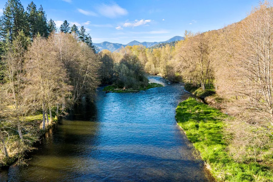 AUCTION BIDDING OPEN: Bidding ends 5/14. Previously Listed $3.995M. Current High Bid $1.5M. No Reserve. Showings by appt. This gorgeous, custom-built log home on over 130 acres overlooks the Applegate River, one of the best rivers for fly fishing steelhead or trout. Your secluded property has over half a mile of river frontage and a long gated driveway, giving you tons of privacy. The interior features beautiful vaulted wood ceilings, warm wood floors, and a cozy rock fireplace in the main living area. Enjoy a cup of coffee out on the patio or take a stroll along the Applegate River at sunset. This lovely property sits in the Rogue Valley, an outdoor enthusiast's dream, and provides abundant space for expanding, entertaining, and enjoying the beautiful OR landscape. Experience the serenity of the expansive property with exceptional river access surrounded by lush forests, a dream location to create a legacy for years to come.Property is in flood plain, flood insurance may be req.