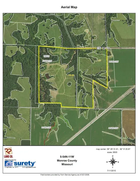 159 acres located just west of Holliday in Monroe Co. 90 acres tillable. Balance of property is wooded and wooded draws with a couple ponds. Asking $3500/acre.