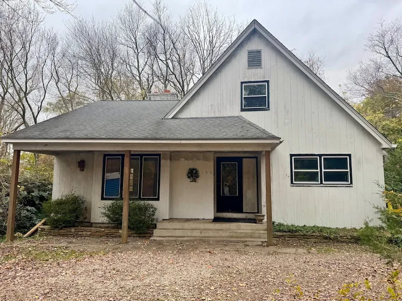 Welcome to this inviting contemporary Cape-style home, ready for its next chapter. With solid construction and wonderful architectural features, this three- to four-bedroom residence is ideally located just two miles from the town center. The main level offers a spacious living room with a cathedral ceiling and fireplace, a versatile first-floor bedroom or study with custom built-in bookshelves, a dining room, and an eat-in kitchen that opens to a covered side porch. An attached two-bedroom in-law apartment provides excellent flexibility, featuring its own private entrance, sliders to a back deck, and access to the basement. Upstairs, you'll find a comfortable bedroom, a full bath, and a bright loft overlooking the living room below. The exterior includes a circular driveway, a welcoming front porch, and a storage shed. With its great layout and timeless charm, this home is ready to be restored to its full beauty - bring your vision and make it shine!