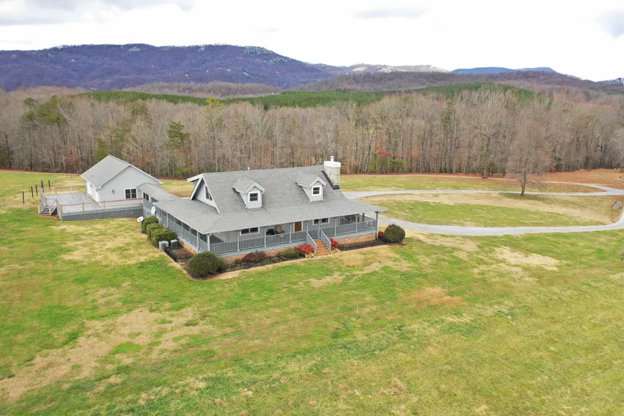Stunning property with views of the Blue Ridge Mountains! This property has over 2600 of frontage on the Middle Tyger River. Mountain view with gently rolling pasture towards the creek line. With over 139 acres, this property has the potential to be a working horse farm, private retreat, or family community. The home features a 4 bedroom 3 bath log home that boasts of a wraparound porch, stone fireplace, pine flooring, exposed beams, some stainless steel appliances, large living room, Florida room, loft, downstairs den with a large bathroom, an additional living space with living room, office, bedroom, and full bath over a 3 car detached garage, a hot tub and more. There is also a metal workshop on the property that could be used for all kinds of possibilities. This is a must see property!