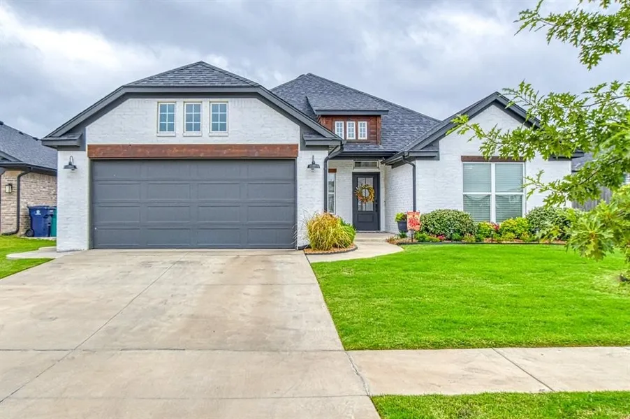 Very well kept, one owner 2022 built home in the Ideal Homes Native Plains community in SWOKC (Moore school district) Light and bright throughout the home - inside and out with energy efficient features to reduce your monthly utility bills. Wood look tile in the main living areas with carpet in the 3 bedrooms complete with ceiling fans. Study/Flex space to the front of the home with built in window seat. The master suite is to the back of the home for privacy with a large walk in closet, tile shower and separate vanities with a garden tub in between. The kitchen features a built in gas range with wall oven and microwave. Quartz countertops, center island with farm sink and counter height barstool seating for three overlooks the living space. White brick surround, gas fireplace as the focal point surrounded by tall windows for maximum natural lighting with custom drapes sure to impress your guests. The living, kitchen and dining spaces flow together for versatile furnishing arrangements. Large covered back patio with privacy fence offers a little retreat without leaving the comforts of your home . The oversized garage is perfect for the longer vehicles and additional storage with epoxied flooring . There's a transferrable 10yr structural warranty thru RWC. The community offers playgrounds, walking trails and stocked fishing ponds for your enjoyment. Conveniently located off SW Penn with a quick commute any direction for shopping and dining in Moore/Norman/OKC.