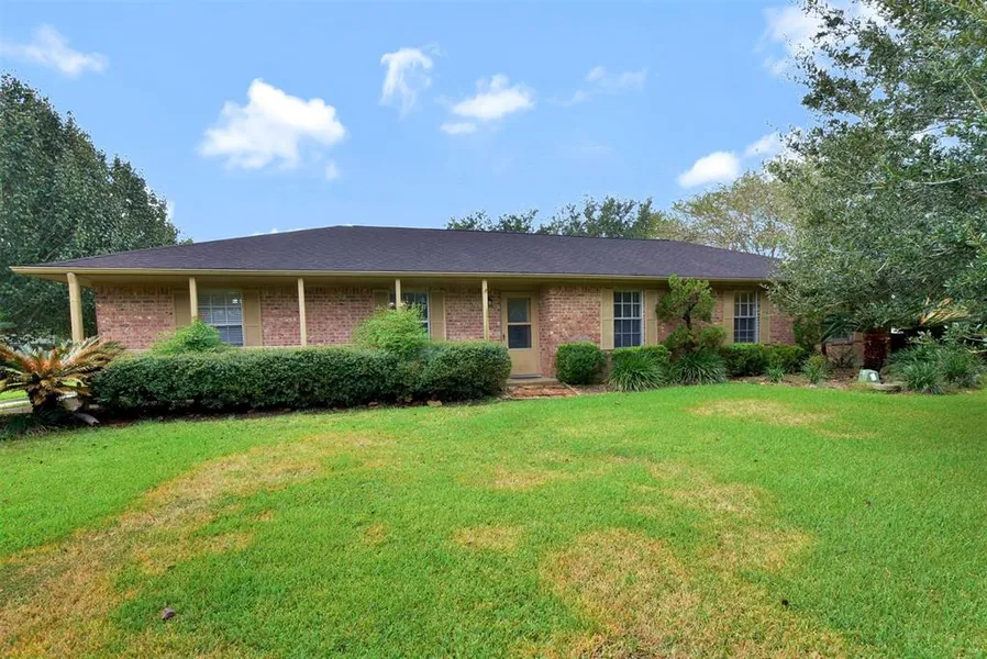 Property has NEVER FLOODED, pad for house built up 5 ft, home has 4-3-3 split floor plan, w/ Sun-room/Office addition, 1 acre lot is fenced, within walking distance of Santa Fe HS, located on a dead-end street, has raised panel doors, fluted trim, recently painted, recently replaced carpet, 18 x 18" square tile floors throughout home, over-sized custom oak kitchen, over-sized refrigerator that stays with the house, includes granite counter-tops, contains a mother in law type quarters (secondary master w/bath), A/C replaced in March 2018, 30 yr roof installed in 2012, water softener whole house filtration system recently installed, pump on aerobic septic system installed in 2016, home is wheelchair accessible throughout, the lot has 22 oak trees, 3 producing pecan trees, an organic garden area, a BBQ cooking pad, a 30 ft covered back porch, 30 ft x 7 ft new wood deck, detached 3 car garage with work area.