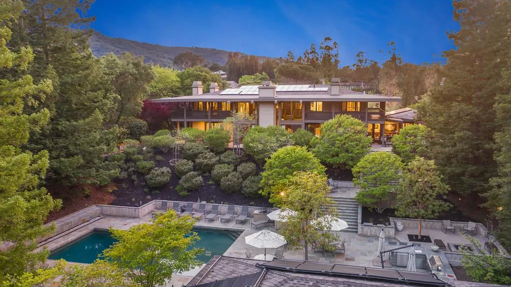 Spectacular Contemporary gated park-like 1.65-acre estate designed, built by William Young, is a triumph of architectural design and craftsmanship. Natural privacy emanates from this one of a kind estate offering a captivating interplay between nature and structure that few homes manage to achieve. Grand double doors open to foyer with custom medallion inlays. The foyer leads to the great room with two-story windows and William Young, hand formed sculptural staircase. The chef's kitchen features Rothwood Mahogany cabinetry, Quartzite Taj Mahal slab counters, two islands with ample seating, and top of the line professional appliances. SunPowered 165-panel solar system runs the home with net zero electric bill.The rear grounds are a world class resort with sparkling pool, spa and full outdoor kitchen. Full guest house with kitchen, Swedish sauna, private deck overlook a perfectly oriented North/South tennis court. Wine cave, 5 car garage, close to downtown LG. https://bit.ly/CBPrevPlan
