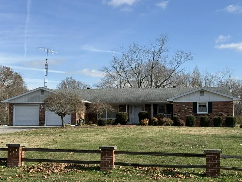 Enjoy the best of both worlds with this charming brick home set on 3.46 peaceful acres just moments from town. Featuring approximately 2,300 square feet of living space inside, you'll find a warm and inviting family room with gas-log fireplace, formal dining room, separate living room, and eat-in kitchen with Fehrenbacher custom oak cabinetry and solid-surface countertops. The home offers four bedrooms and three full bathrooms, including one bathroom connected to the large utility room. The primary bedroom boasts large closets, crown molding, beautiful plantation shutters, and en-suite bath with a walk-in tub. Two of the bedrooms are exceptionally spacious. Updates include replacement windows and an atrium door with built-in blinds. Originally a two-car garage, the current space now includes a professionally installed 4'x8' storm shelter by All Weather Safe Room, Inc., providing peace of mind during Midwest storms. Outdoors, enjoy a covered front porch, an aggregate concrete back patio, and wide-open country vistas. The property also includes full access to a scenic lake located behind the home (ownership is shared with the neighbor). This well-maintained property is a must-see to fully appreciate all its amenities and serene setting. Don't miss this opportunity for comfortable country living close to town! Call Lyndell for details and showings! MLS# 11614088