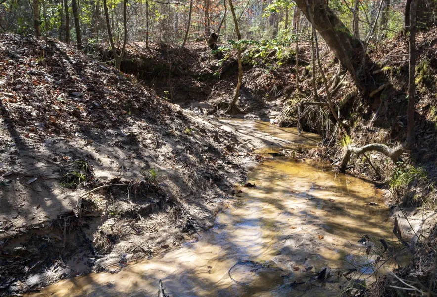Towering trees blanket this 16 Acre property from end to end. The pictures do not do it justice, it is rare to see a forest like this left in East Texas. A trail and a small home/camp site have been cleared on the main hill near the middle of the land. Additional underbrushing to open up the forest floor beneath these tall pines would turn this property into a park. Massive hardwoods are also scattered throughout the creek bottom. This creek is exceptional, with clear running water and sandy banks! This water features provides opportunity for self sufficiency while also attracting plentiful game from the vast surrounding timberland parcels. Also, a small seasonal stream runs through the middle of the property in a ravine, which would perfect to construct a large lake with relative ease, below one of the plateau homesites!