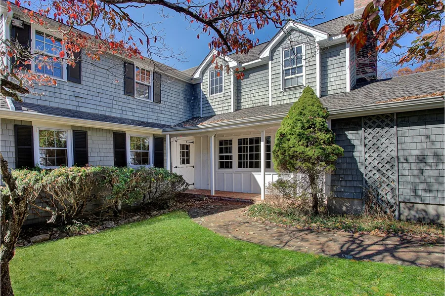 This charming four bedroom expanded ranch is nestled on six acres on a pretty country road. The home has a cozy, cottage-like feel with its original knotty pine paneling, exposed beams, and hardwood floors. The family room is spacious and inviting with an expansive brick fireplace and connects through French doors to an adjoining conservatory with wide plank floors, a bay window and doors leading to a brick patio, perfect for enjoying the outdoors. The eat-in kitchen features stainless steel appliances and granite countertops. The large living/dining room is flooded with natural light from the many windows overlooking the side yard. French doors lead to a wrap-around deck. A bedroom with a large cedar closet, an additional room that can serve as a home office or guest suite, and a full bath complete the first floor. The second floor boasts a luxurious primary suite with a fireplace, balconet, and an oversized walk-in closet with built-in cabinets and shelving. The ensuite bath features a double vanity, jetted tub, and stall shower. The secondary bedrooms are light filled with views of the property. The exterior of the property is just as lovely, with an in-ground pool, mature plantings, and nearly three open acres to enjoy. The partially finished walk out basement offers additional living space and a large storage area. Near Tewksbury schools as well as Christie Hoffmann Farm Park, the Columbia Trail, Ken Lockwood Gorge, fly fishing areas, and other outdoor recreation areas.
