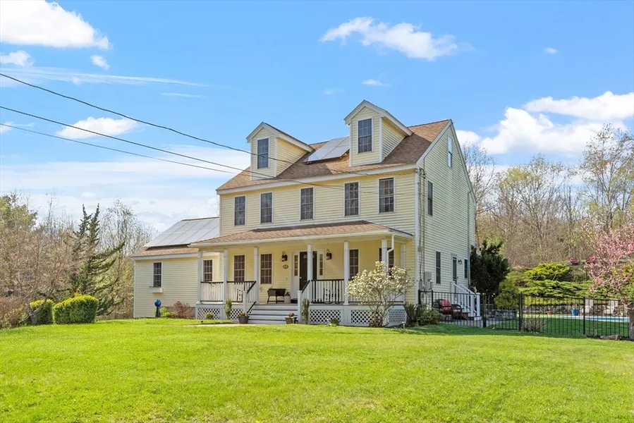 It's an Elegant and Beautiful Colonial With Resort-Style Ambiance! Immaculately maintained 4BR, 2.5BA home in scenic Hubbardston, MA. Truly pristine interior features flowing crown molding, abundant natural light, and thoughtful design. The kitchen boasts a Viking cooktop, center island, and solid cherry cabinetry. The open layout flows from the kitchen to the dining area into the dramatic great room, showcasing vaulted ceilings, built-ins, lush hardwood floors, and wood-burning stove. Formal dining room and office. Spacious bedrooms include tranquil primary suite. Partially finished basement offers additional flex space and mud room. Outdoor paradise-like sanctuary features in-ground pool, covered patio, boutique vineyard, garden nooks, a masonry exotic fish pond, private professionally landscaped, fenced yard. Enjoy country living minutes from Rt2 and Worcester's amenities with hiking, skiing, and lake recreation nearby. Move-in ready and truly one-of-a-kind-your dream home awaits!