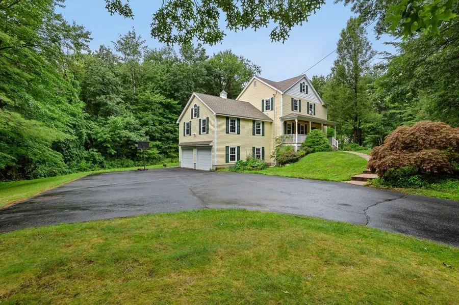 Beautifully maintained colonial home with New England charm, lovely private setting and great curb appeal. Sun drenched Farmers Porch leads to nicely sized foyer, living room/home office with french doors, oversized EIK/dining room tastefully updated to include center island and family room with cathedral ceiling and pellet stove ALL with hardwood flooring! Nicely sized half bath competes first floor. Second floor has 2 large bedrooms, master bedroom with walk in closet and family bath with 2 vanities, built in cabinetry and tile flooring. Seller has finished the above grade lower level to include lovely 3rd bedroom with full windows, bathroom, and additional bonus room. Exterior green space shines, enjoy your private green space including fresh mint garden, deck in the rear and porch on the front, exceptional parking and 2 car garage. Location is private yet close proximity to Nashua, 16 Oak Street a wonderful place to call home in top ranked school district.