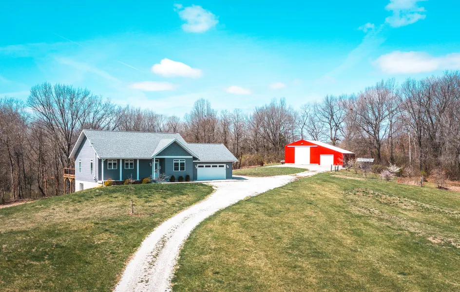 Newer ranch style home situated atop a ridge on 16 rolling acres. This setting offers privacy and a great opportunity for recreating right out the front door. Enjoy views of deer, turkey, and other wildlife quite often. There is sufficient wooded acreage and food plot areas to pursue wild game on your own land. The home has an open floor plan with vaulted ceilings, beautiful wood floors, large master, possible 3rd bedroom, lower level family room, a front porch & rear deck to enjoy Mother Nature from. The detached pole building is 42 x 46, equipped with electric, and partially concrete. Dont miss your chance at making this secluded paradise yours!