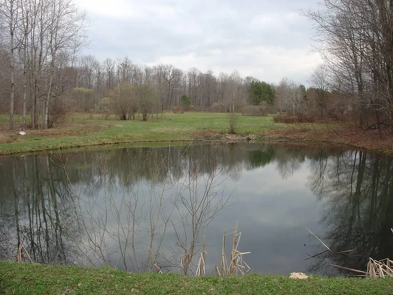 New York land with camp, morton building, stream, pond and adjoins stateland for Sale: The property has approximately 826 feet of road frontage on Herrick Road. This is a rare find that won?t last long! The property consists of two (2) adjoining 8.2 acre parcels that comprise the 16.4 total acres. The property is 75% forested with maple, ash, cherry, oak, some hemlock and old producing apple trees. A stream runs through the woods in the northwest corner of the property and there is a beautiful, fully stocked bass pond, 12 feet deep near the center of the property. The balance of the area is mowed and maintained by the owner, creating a great balance between open and forest to rest, relax and hunt in. Add to this that the property directly adjoins Hatch Creek State Forest on the complete west boundary and most of the north boundary, and you have just added 1,283 acres of public land to this wonderful 16 acre property. Also included is a 14? x 18?, 2 room cabin with electric, stove, refrigerator, woodstove and 5 bunk beds and a newer (2008) 30? x 40? Morton building that is wired for generator use. All oil, gas and mineral rights are owned and will transfer. There are no leases affecting the property. Additional items in the Morton Building may be purchased separately. This won?t last long in this area at this price. Showings by appointment only!