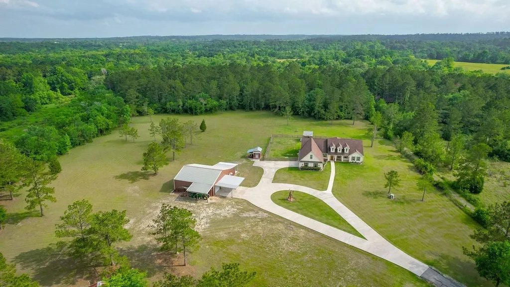 Beautiful Home on 16.5 acres close to Lake Livingston. Front porch has room for a swing. Open concept Living,Dining with a large Island Kitchen and Breakfast Bar. Custom cabinets with special pantry, sliding shelves and special storage compartments. Built-in Entertainment Center holds a large TV., open shelving and additional cabinets.Tray Ceiling,Plantation Shutters. French Doors lead to a large Sunroom with a sink and cabinet, plus a/c. Primary Bedroom has tray ceiling, walk-in closet, en suite bathroom has one as well.Primary bath has a soaking tub, separate shower, double sinks and a dressing vanity, Two additional bedrooms with a hall bathroom between them with 2 vanity sinks. Large bonus utility room has a washer & dryer connections in a closet,sink,and lots of cabinets. Game room up with a half bath above the Over size garage with epoxy floors. Luxury vinyl flooring.Tile in bathrooms. 40X40 Workshop & Man cave with a/c, porch, Carport and two Lean to's, Garden Shed. Gated Entry