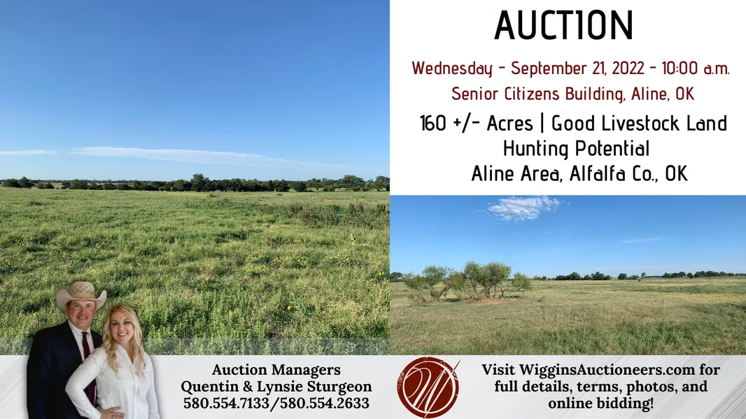 Auction Location: Senior Citizens Building, 104 N. Main St., Aline, OK