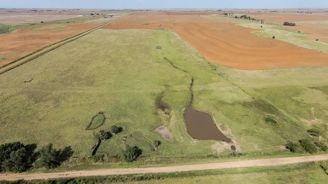 Farm #2 (160 Acres): This small grain/livestock farm is located from SH 45 & 58 Junction, 1 mile east on SH 45, then 1/2 mile south to the northwest corner of the property. According to the Alfalfa Co. F.S.A., there are 98.36 acres of cropland with a 98.4 acre wheat base and a PLC yield of 31 bushel per acre. Principle soil type of the cropland is Grant-Nash complex, Class IV; with lesser amounts of Grant silt loam, Class III and Quinlan-Woodward complex, Class VII. The balance of the land is in native grass pasture and a spring fed pond, along the south side of the property.